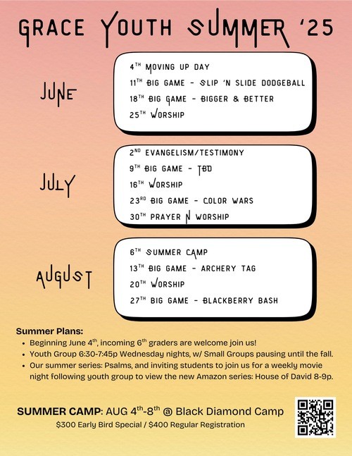 Our co-ed weekly youth ministry focuses on prayer, worshipping our King, studying His Word, small group discussions (age and gender based), and fun and games! We believe there is no JV Holy Spirit, this means our students are as much on the frontline as any of us and need to be equipped and encouraged to take steps of maturity in their relationships with